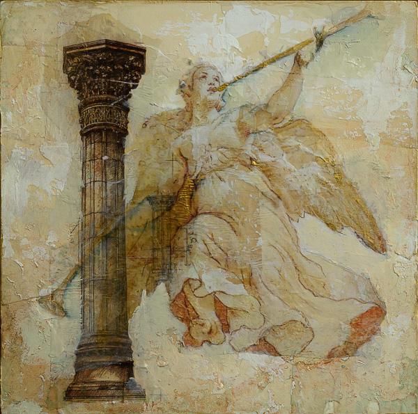 Many layered mixed-media paintings and portraits exploring the passage of time, memories and personal histories